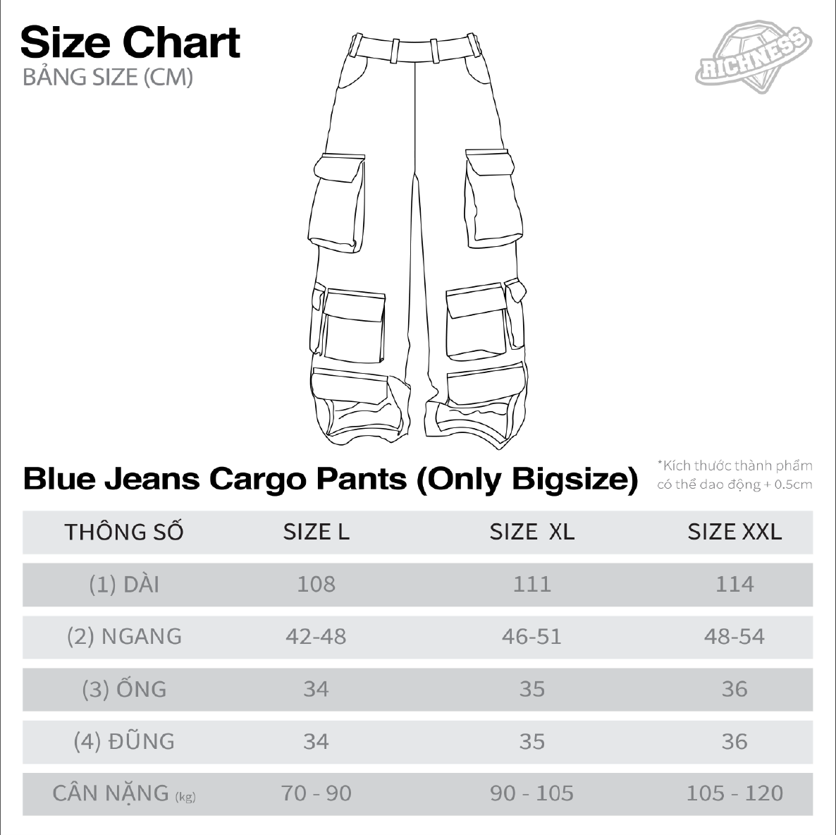 * Đối với các đơn hàng đổi trả do lỗi sản xuất, giao nhầm hàng, RICHNESS sẽ chịu phí vận chuyển 2 chiều cho quý khách.